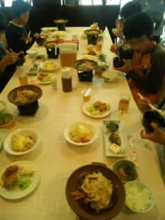 ホテルでの最初の食事。皆、残さずよく食べました。
