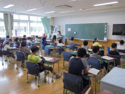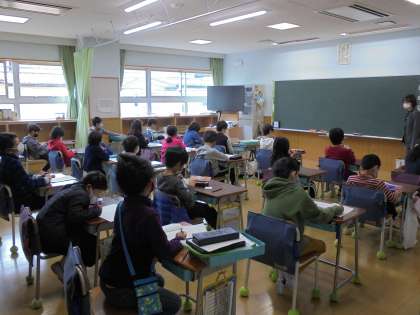 放送朝会の様子です。写真は上から、2年1組、2年2組です。静かに聞くことが当たり前になっています。毎週取り組んできたことの成果です。