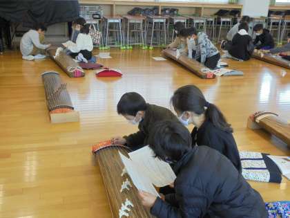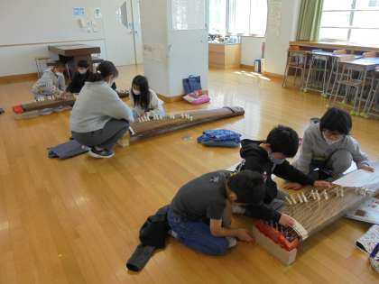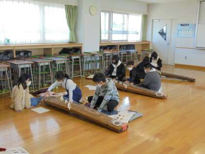 23日(火)の2時間目、4年2組がお琴の学習に臨みました。自分の番になると正座をして、練習する姿がありました。外には本物の桜が咲き、いい雰囲気でした。