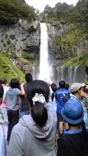 華厳滝を見て、その迫力に感激。なんとその時、日本カモシカを発見。更に感激。