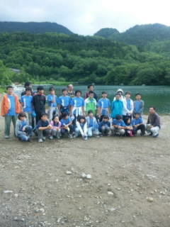 足湯につかり湯の湖で記念撮影を終え、これからハイキングです