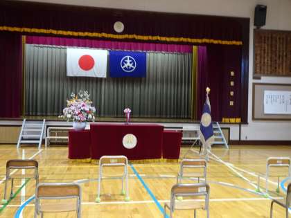 在校生の校歌は録音を流します。マイクテスト、完了です。