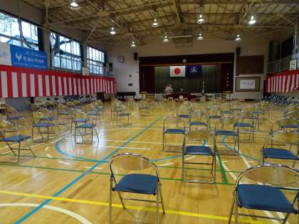 会場もピカピカに磨きました。椅子はソーシャルディスタンスを保って並べました。