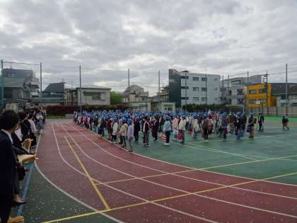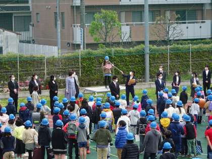 着任式。子どもたちは、目をキラキラ輝かせて、新しい先生方を見つめていました。