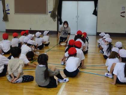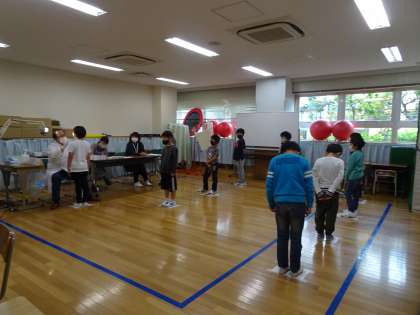 3時間目は、1年生が体育館で体育をしていました。並び方の練習です。初めて赤白に並びました。なかなか上手です。さあ、覚えられたでしょうか。