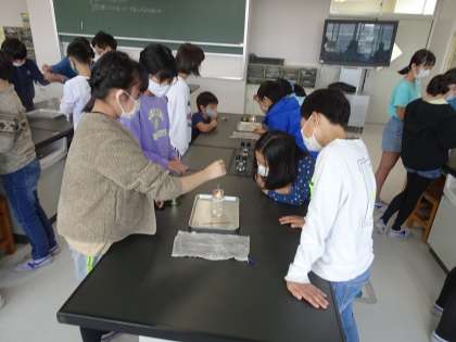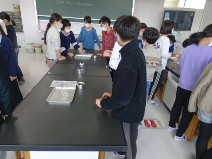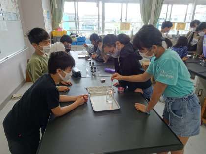 燃焼の実験です。マッチをするのも初めての人がいました。酸素と二酸化炭素、線香の煙の動き、いろいろ観察できました。