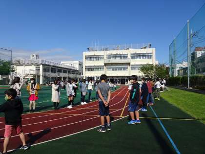 6年生を送る会も、全校児童で花道をつくりました。今日も、全校児童で花道をつくりました。1年生が、校庭をぐるりと1周しました。ミッキーマウスマーチの音楽に合わせ、上級生の手拍子を浴びながら入場しました。