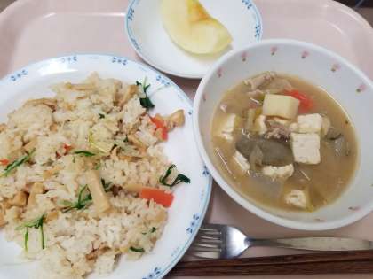 今日はいまがまさに旬のたけのこごはんの献立です。