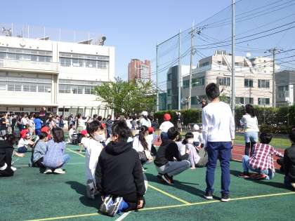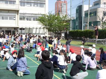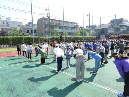 全校児童と校長先生で、アドジャンをしました。同じ形を出した人が勝ちです。3回戦をして、残った人は、今日も運がよい、と思って過ごしましょう。最後に「礼」をしました。5年生の「礼」の仕方が、美しく、気持ち良かったです。