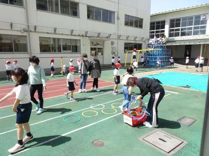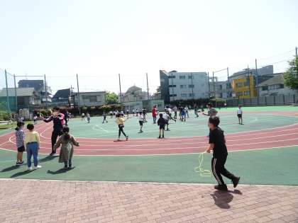 全校児童が思い切り運動しているのは嬉しい限りです。コロナも吹き飛ばしたいですね。遊具も使い、学年も交じって、工夫して遊んでいます。