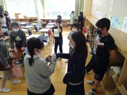 2回目の今日は、先生方もより工夫して、親和的な雰囲気になりました。目的は、コミュニケーションを安心してとれる関係をつくることです。身体で感じたことがすべてです。どのグループも、楽しい時間になりました。