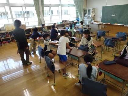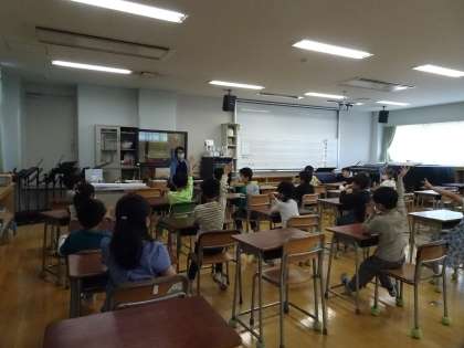 音楽室では、リズムに合わせてジャンケンをすることに挑戦していました。身体全体で乗っている雰囲気が、とても楽しそうでした。音楽を使って、言葉を使って、自ら楽しむアクティブな動きを体験できました。