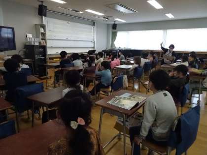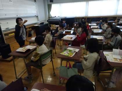 中里小では、1年生も音楽室を使えます。今日は、校歌を覚えました。リズム打ちも楽しくできました。皆で音を合わせることも集中して取り組む面白さがありました。