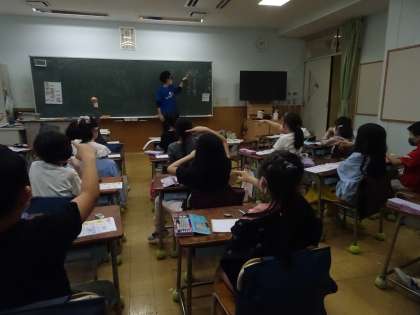 今日は、「風」という漢字を覚えました。まず、風のつく言葉を出し合いました。その後、空で書く練習をしました。皆、自信満々です。力強く「風」という字を書き、丁寧にノートに練習をしました。