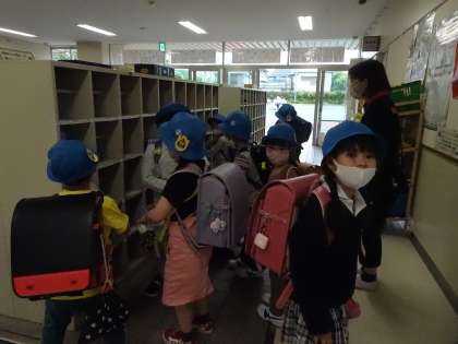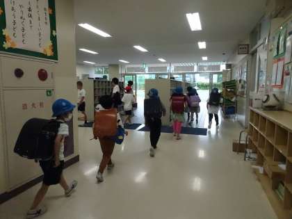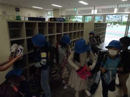 すっかり慣れて、上手に上履きを脱いだり、履き替えたりしています。元気に「さようなら」をしていました。