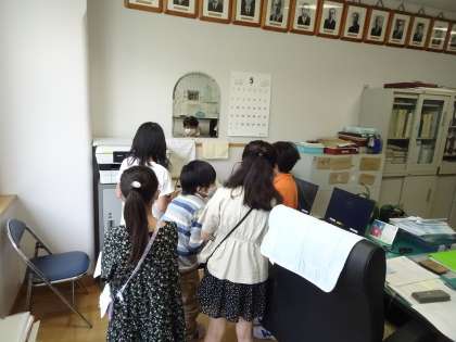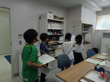 社会科の授業と総合の授業がリンクする課題です。まず身近な学校の水道を調べる活動を、グループで行いました。職員室、校長室、校庭、事務室、すまいるの部屋等々いろいろ調べました。気付いたこと、発見したこと、たくさんの問いが生まれそうです。