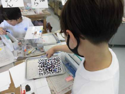 絵の具でいろいろな色の発見がありました。筆の使い方でも、表現が変わります。どんどん発明された芸術品に感心しました。