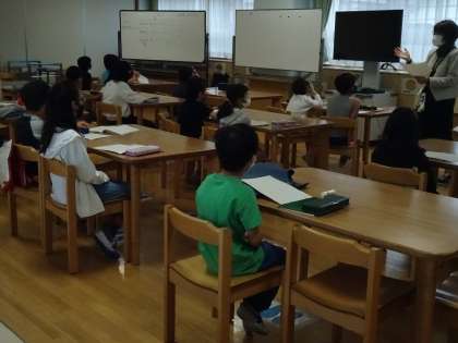 低学年は、「きもち」という詩、中学年は、「私と小鳥とすずと」金子みすずに挑戦しました。心に感じたことを大切に、表現ができるとよいですね。高学年は、「平家物語」です。詩の意味や言葉の響きに着目して声に出して読もうというねらいです。