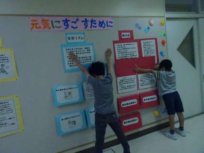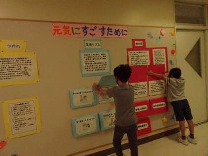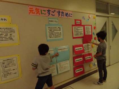 1枚めくると、何が書いてあるのかな。熱中症の予防や、生活リズムのことがたくさん書いてあります。健康づくりに参考になります。