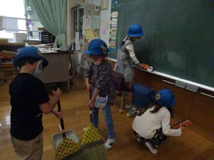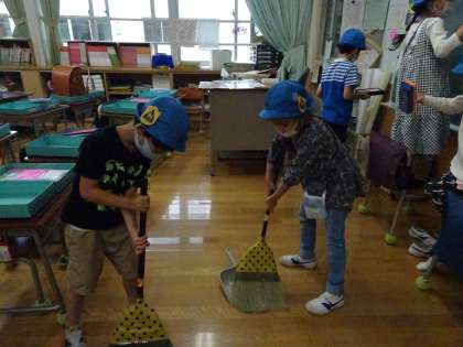 コロナ禍では、放課後清掃になりました。ほうきやちりとりを使って、上手に清掃している姿に、成長を感じました。仲間としての思いやりもすてきでした。