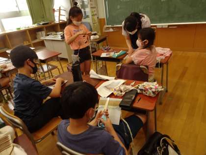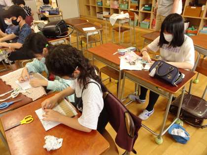 手芸クラブ。6年生がリードをして、積極的に関わってくれています。頼もしい6年生。アイデアマンの5年生。4年生は、一生懸命活動しています。