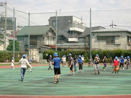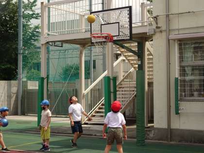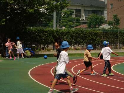 ボールを使う遊び、長縄、鉄棒、ジャングルジム等の遊具で遊ぶことなど、とても活発に走りまわっています。
