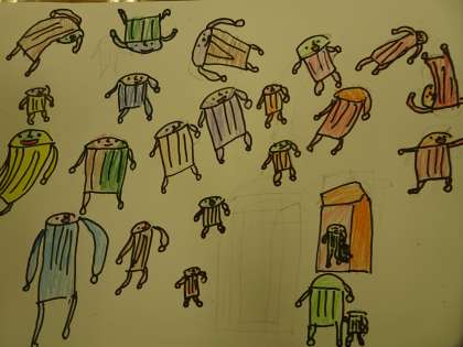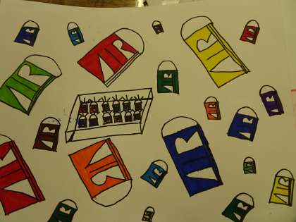 友達のを見ると、益々アイデアがわいてきます。楽しい時間になりました。サインペンも、上手に使っています。