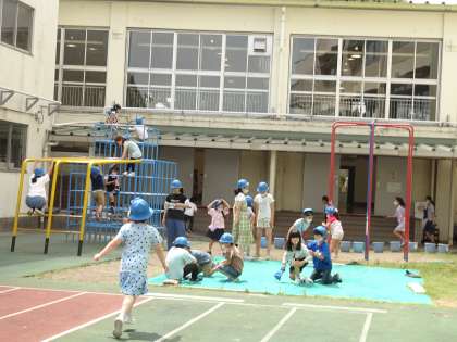 今日も暑かったのですが、子どもたちは、元気に運動をしています。4年生と5年生でドッジボールをしていました。勢いあまって、エネルギーがぶつかり合い、子どもの世界が広がりました。