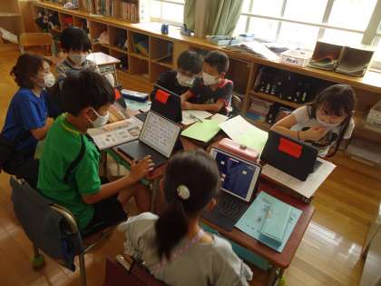 2年生が、1年生に教えている姿、3年生と4年生で学び合う姿、5年生と6年生が交流する姿、いろいろ発見がありました。