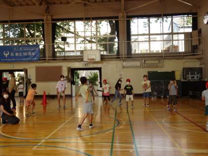 暑くなってきましたが、どの飯も思い切り走り回っています。元気な声がこだまして、皆に元気エネルギーをまいてくれました。体育館のグループも、元気いっぱいに遊んでいました。