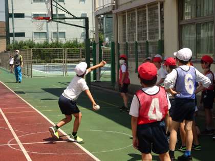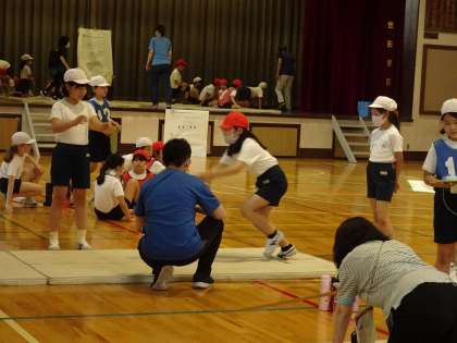 3,4年ペアは、ファミリーグループと同じ組み合わせで、仲よく、良きライバルの雰囲気で、頑張っていました。ソフトボール投げは、投げ方の上手い人が、上手に教える姿もありました。