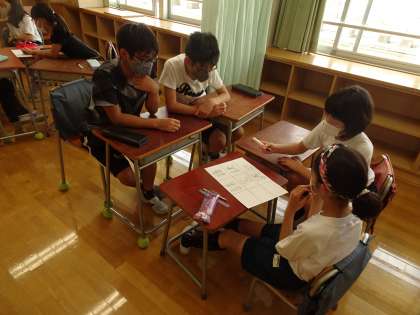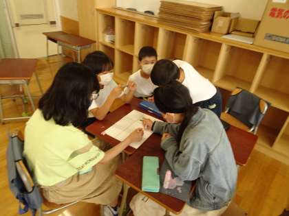 今日は、ファミリーグループでの漢字学習でした。各グループで、漢字に興味・関心がもてるよう工夫している様子です。高学年は、言のつく漢字で、漢字ビンゴや、漢字リレーをしました。