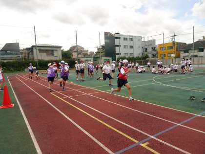 5年生、6年生で合同の体育を行いました。今、体力テストでいろいろな力を付けるにはどのような運動をすればよいか考えるきっかけができました。