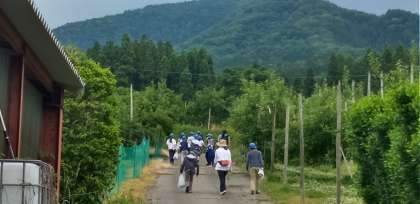 川場村のりんごの木に囲まれ、鱒つかみ場に行きました。