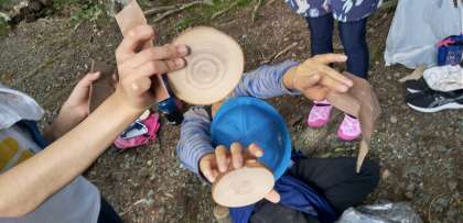 紙ヤスリで、職人さんのように、素敵なコースターを作りました。荒い紙ヤスリ、キメの細かい紙ヤスリで仕上げました。