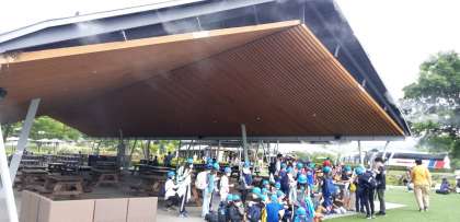 12時45分にバスに乗って、出発したとたんに雨が降ってきました。本当に運が良かったです。子どもたちの心がけが良かったからでしょう。