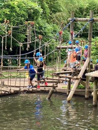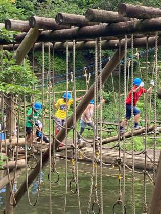 つり橋、気をつけて皆で声を掛け合って渡りきりました。