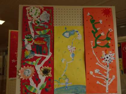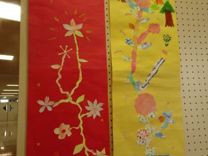 長い色画用紙にそれぞれ素敵な花が咲きました。4年生の作品です。