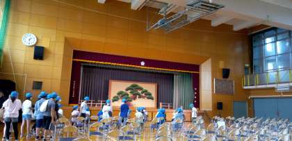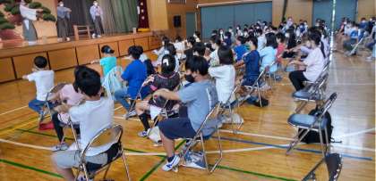 池尻小学校に出かけて、狂言を鑑賞しました。ワークショップも体験し、文化に親しみました。