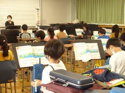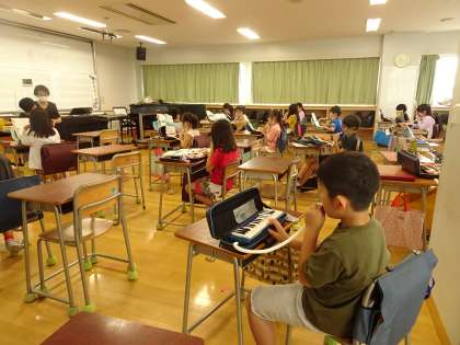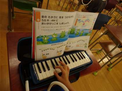鍵盤ハーモニカに挑戦しています。とても息が合った演奏になっていました。
