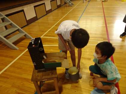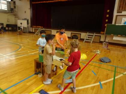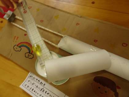 5年生の図工の作品であるビー玉ころがしで、2年生が遊ばせてもらいました。たくさんのコーナーに満足している2年生。呼び込みをして親切に教えている5年生。微笑ましい時間でした。
