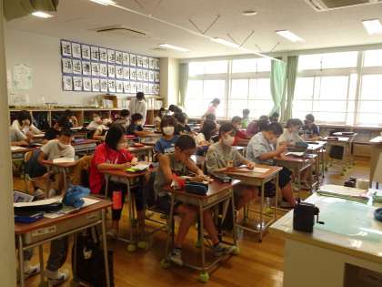 5年生は、社会科の米づくりについての授業でした。資料を読み取って考えを出し合うことが大切です。