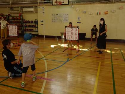 ストラックアウトは、なかなか難しいですが、人気の種目の1つです。投力が弱くなっている子どもたちに、とてもよいゲームでした。