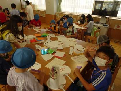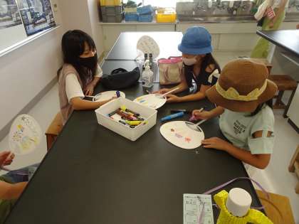 楽しくうちわを作りました。デザインも涼しい色で工夫している様子が見られ、感心しました。