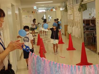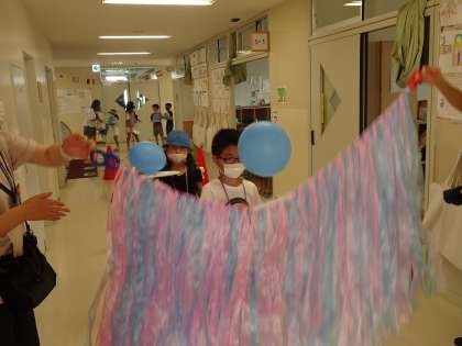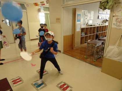 うちわで、風船を上げながらゴールまで進みます。ちょっとしたスリルも味わえて、見ている人たちが、思わず応援してしまう競技でした。