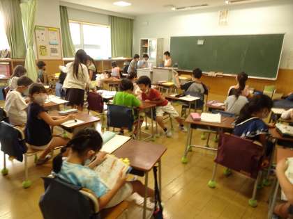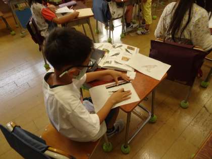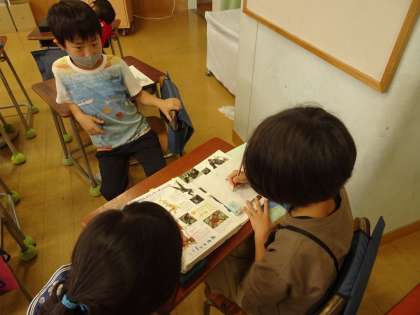 動物図鑑を広げて、いろいろな動物を調べていました。絵を上手に描いている人もいます。