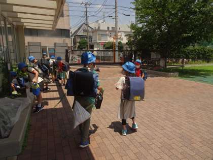 いよいよ夏休みです。大きな荷物を抱えて帰る児童もいます。熱中症も心配な暑さですが、皆、元気に帰っていきました。