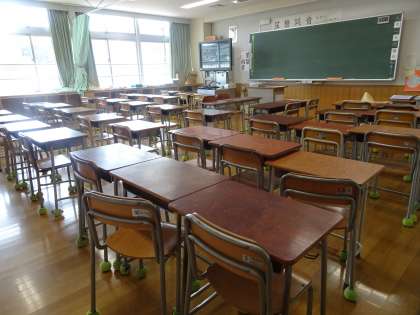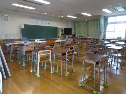 5,6年生の教室です。ホールもピカピカです。扉のレールも細かいほこりまできれいに磨いてくださっています。