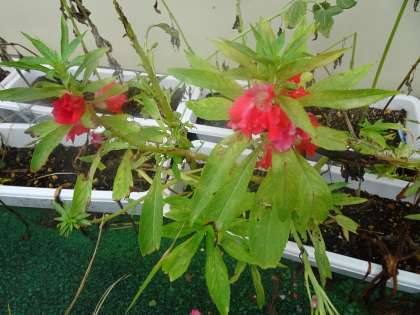 3年生のプランターも、のどがかわいていましたが、大雨で、少し元気を取り戻しました。ホウセンカの花も咲いています。