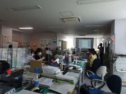 Teamsの研修を重ね、どのような授業をすると効果的かを話し合っています。各教室に分かれて、オンラインにした時の映像をどのように配信するとよいか、検討しています。はじめは、いろいろ問題点もあると思います。ご理解・ご協力をお願いいたします。